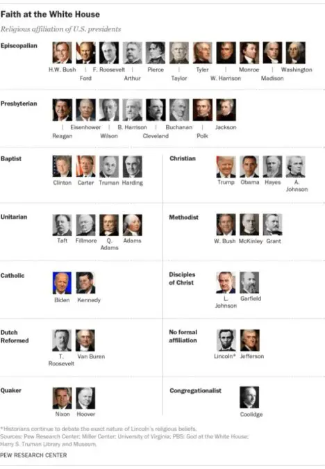 Nearly all were Christians, but Biden only second Catholic
