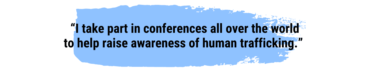 Survivors can provide valuable insights into the crime of human trafficking and must be engaged in anti-trafficking efforts, she believes. “We have lived through it. We are the best people to help everyone understand how it really is. The reality is terrible.” Such insights are “crucial for overall awareness and for better strategies and campaigns to combat this crime” she concludes.