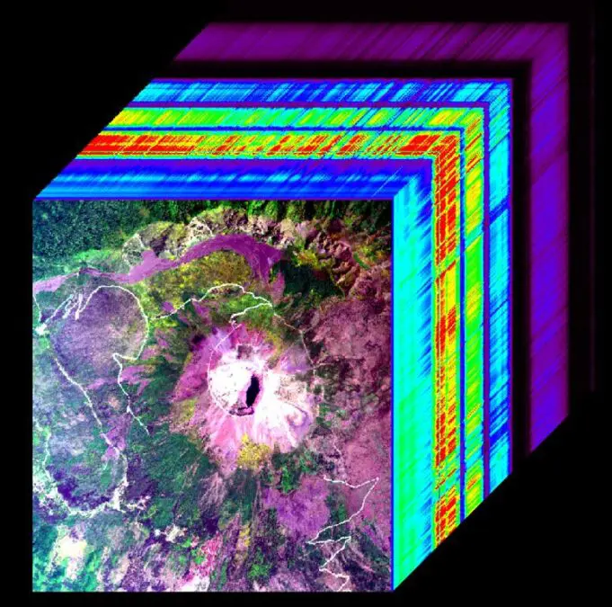 Hyperspectral image cube showing Mount Vesuvius, Italy. Credit: JPL