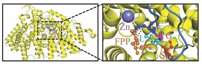 An illustration of PARIS with the crystal structure of Farnesyltransferase, the enzyme that enables farnesylation. Credit: Johns Hopkins Medicine