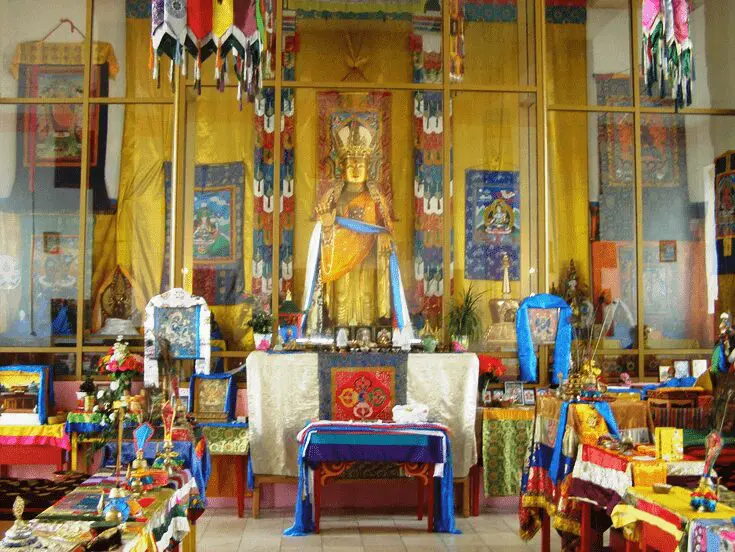 The prophecy came true in Buryatia, where to this day the statue of the Sandalwood Buddha (Bur: Zandal Zhuu) is preserved. The legendary statue is kept in the heart of the Egituysky Datsan “Damchoy Ravzheling.” ( Tib: Damcho Rabgye Ling, “Place of the Full Development of Holy Dharma”) The Egituysky Datsan is located in Yeravninsky District, around 280 kilometers east of Ulan-Ude, the capital of Buryatia. The datsan (monastery) is affiliated with the Buddhist Traditional Sangha of Russia and one of the most popular monasteries in Buryatia. Its captivating power is strongly related to legends of the Sandalwood Buddha.