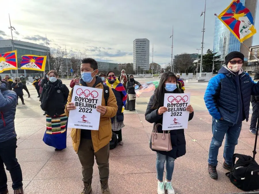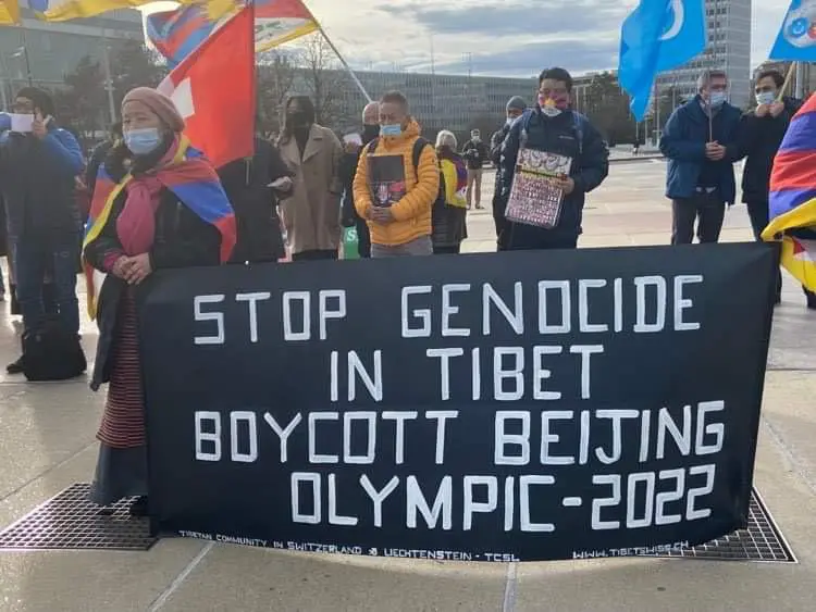 Tibetans in Switzerland holding protests calling for the boycott of Beijing winter Olympics 2022