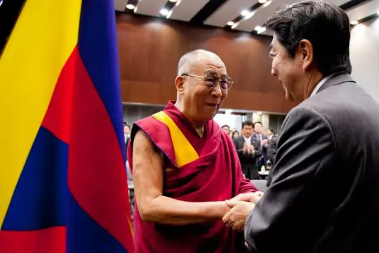 His Holiness the Dalai Lama with Shinzo Abe in 2012 ©Tibet House Japan