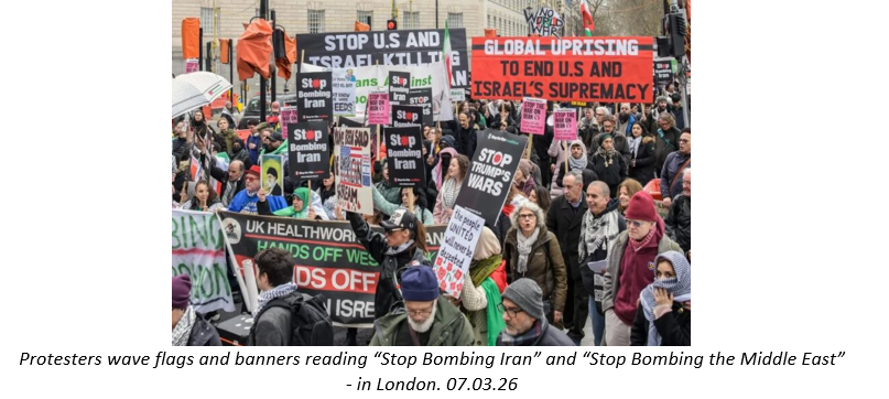 Besides, killing the leadership of Iran, Israel and USA carpet bombed Iranian military installations, refineries, water supplies, oil pipelines and other infrastructure. According to the latest information, nearly 1300 Iranians have died, including 158 schoolgirls in an initial attack on an elementary school in Minab, southern Iran.
