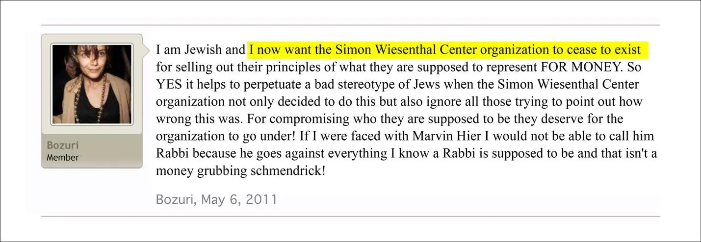 Other posts expressed hostility toward Jews, despite Silverstein describing herself as a Jewish atheist. She also wrote that she wanted the Simon Wiesenthal Center, a Jewish human-rights organization founded by Nazi hunter Simon Wiesenthal, “to cease to exist.”
