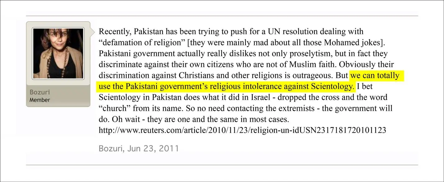 In another message, Silverstein wrote: “We can totally use the Pakistani government’s religious intolerance against Scientology.”